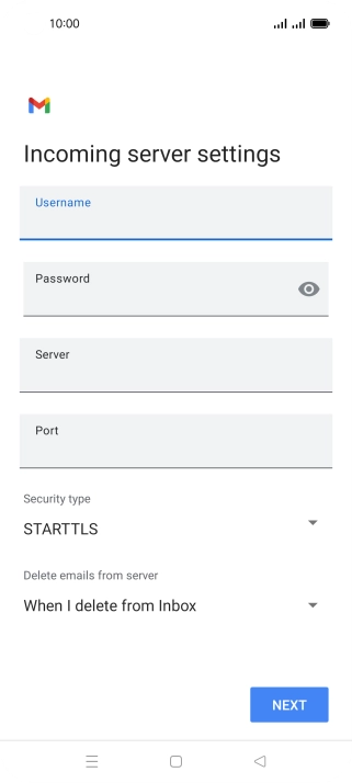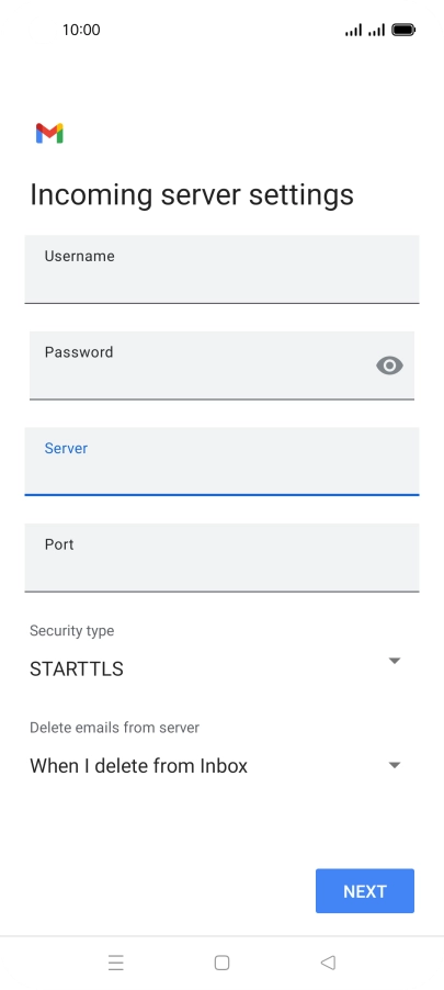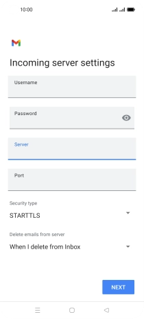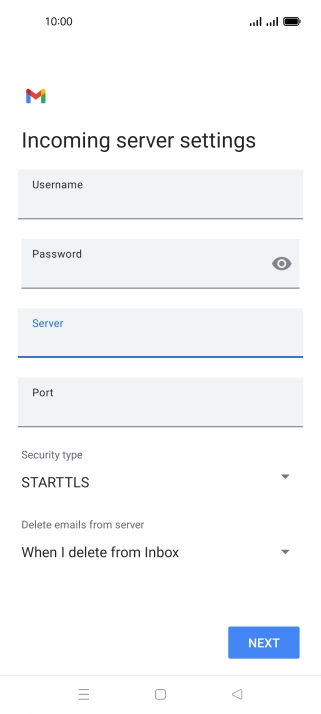 Press the field below "Server" and key in the name of your email provider's incoming server.