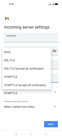 Press the field below "Username" and key in the username for your email account.