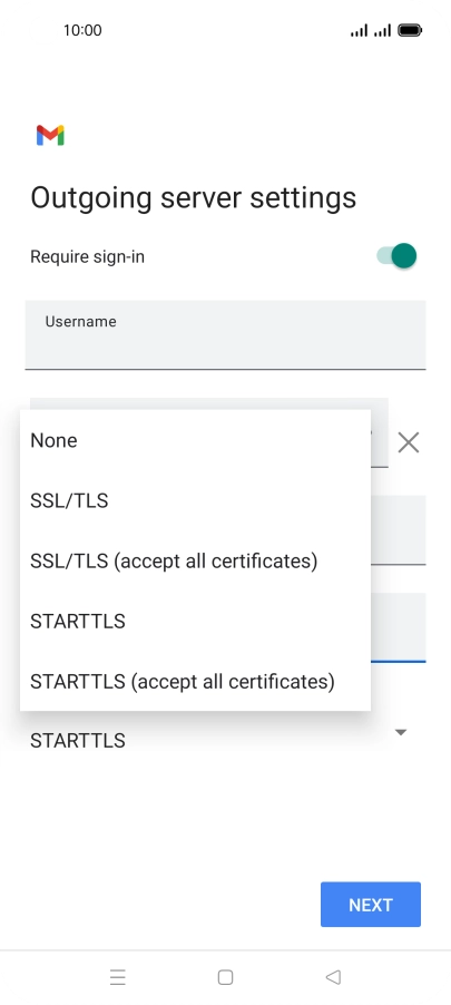 Press the field below "Username" and key in the username for your email the email provider's outgoing server.