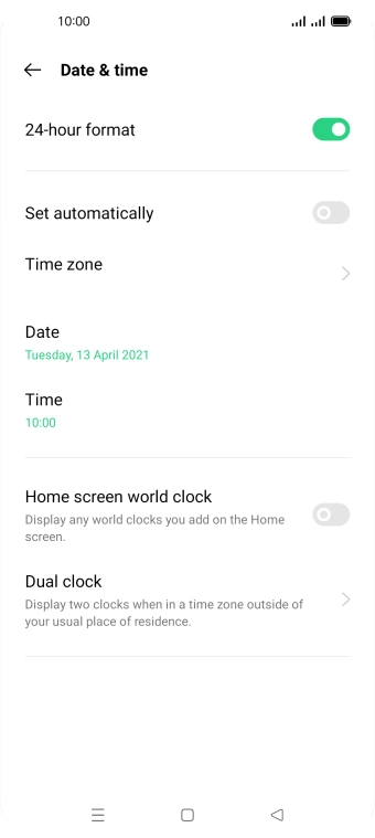 Press the indicator next to "Set automatically" to turn on the function.