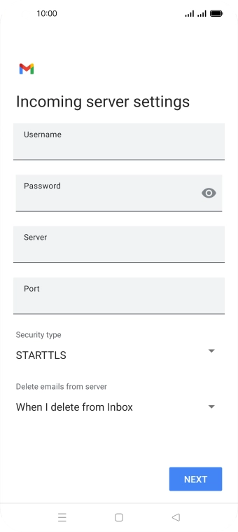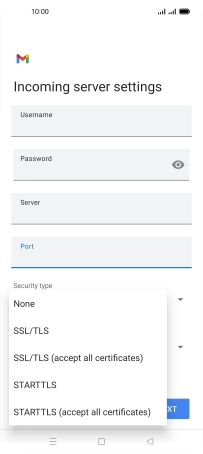 Press the field below "Server" and key in the name of your email provider's incoming server.
