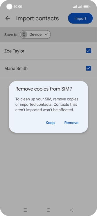 If you want to keep the copied contacts on your SIM, press Keep.