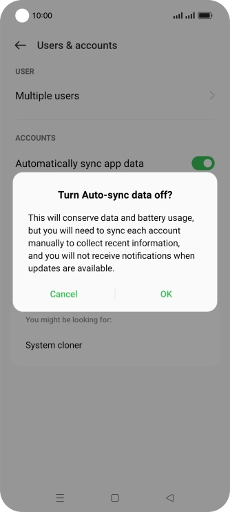 Press the indicator next to "Automatically sync app data" to turn the function on or off.