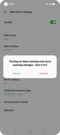 Press the indicator next to "Data roaming" to turn the function on or off.