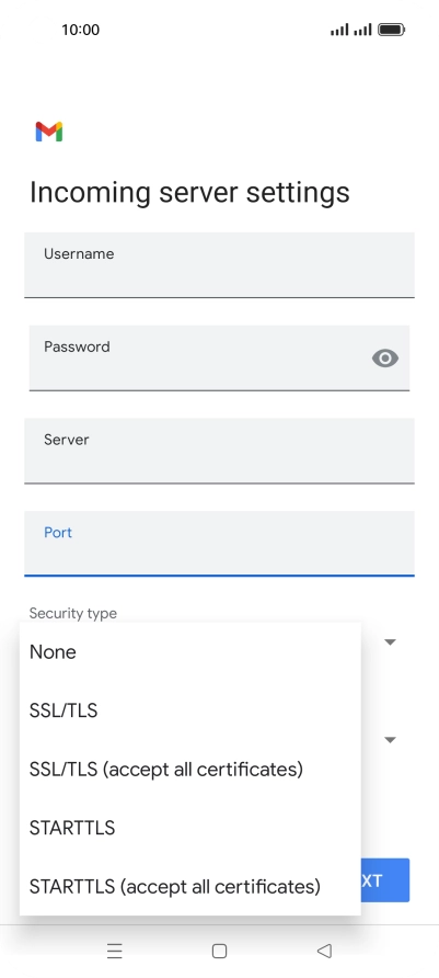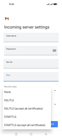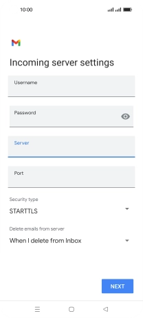 Press the field below "Server" and key in the name of your email provider's incoming server.