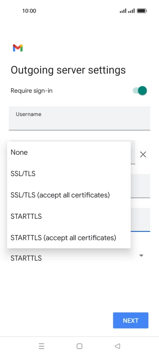 Press the field below "Username" and key in the username for your email the email provider's outgoing server.