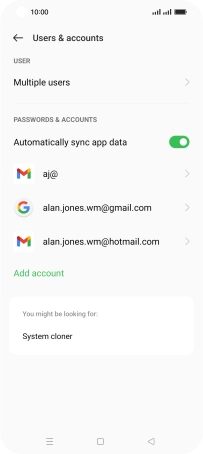 Press the indicator next to "Automatically sync app data" to turn the function on or off.