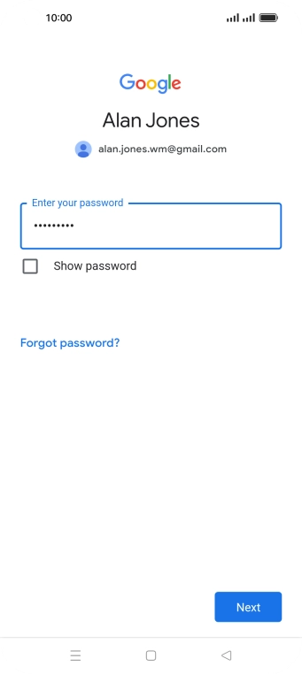 If you don't have a Google account, press Create account and follow the instructions on the screen to create an account.
