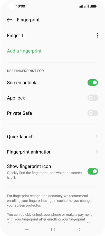 Follow the instructions on the screen to create the phone lock code using your fingerprint.