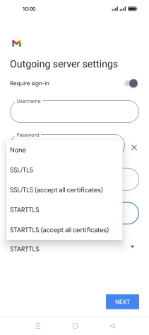 Press the field below "Username" and key in the username for your email the email provider's outgoing server.