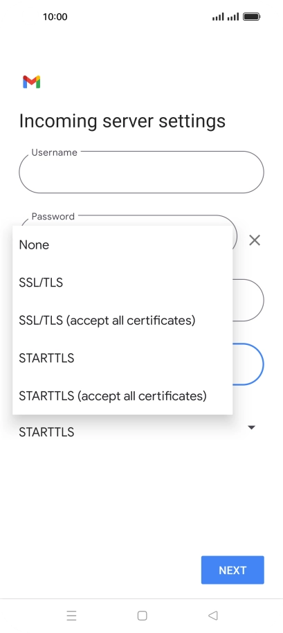 Press the field below "Server" and key in the name of your email provider's incoming server.