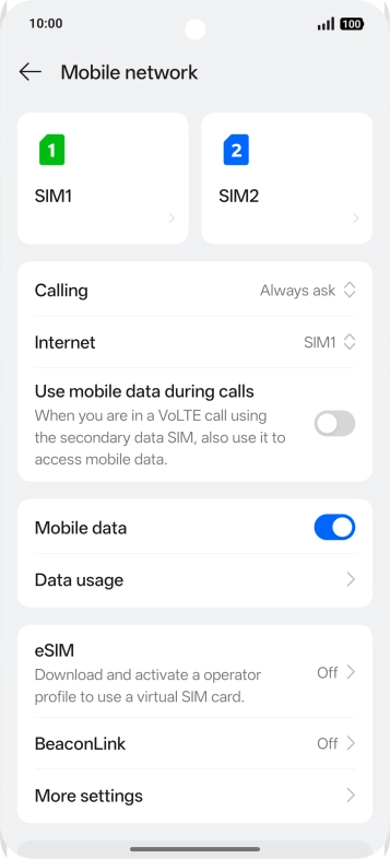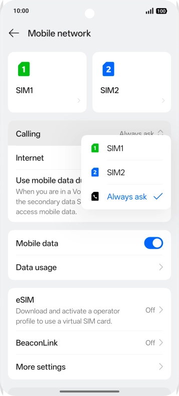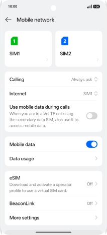 Select dual SIM settings