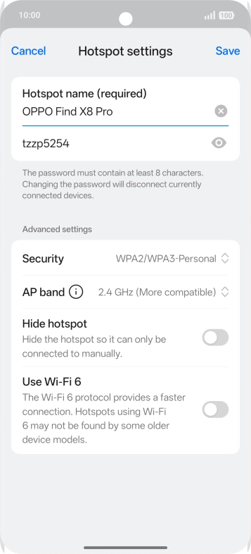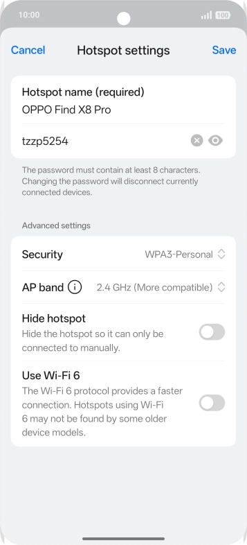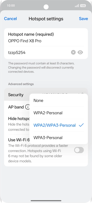 Press WPA3-Personal to password protect your Wi-Fi hotspot.