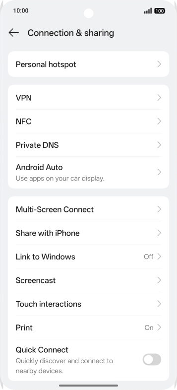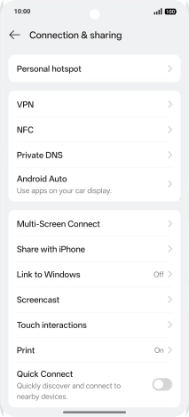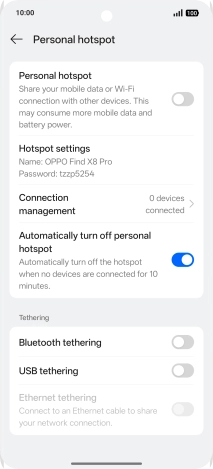 Press the indicator next to "Personal hotspot" to turn on the function.