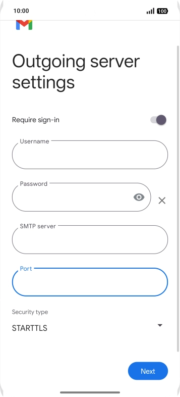 Press the field below "Port" and key in 587.