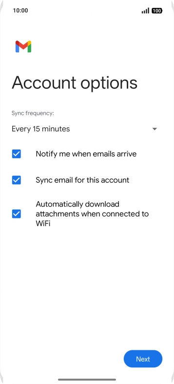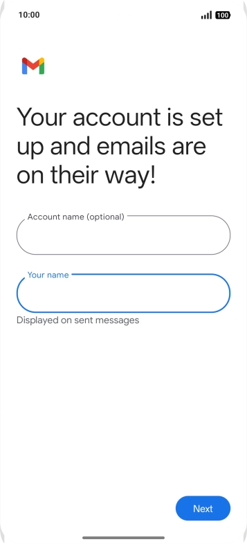 If this screen is displayed, you email account has been recognised and set up automatically. Follow the instructions on the screen to key in more information and finish setting up your phone.