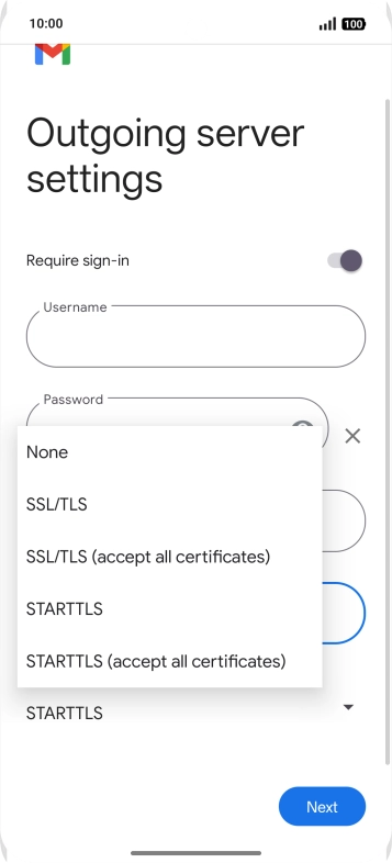 Press the field below "Username" and key in the username for your email the email provider's outgoing server.