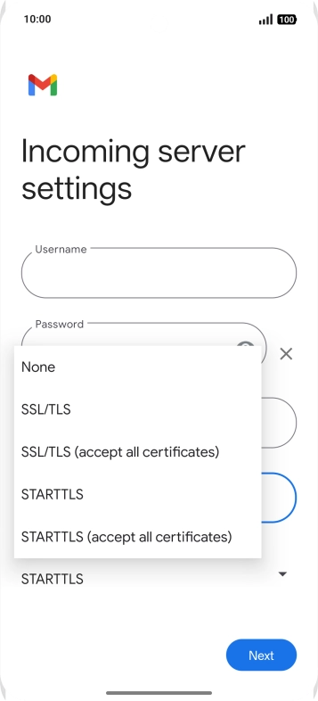 Press the field below "Server" and key in the name of your email provider's incoming server.