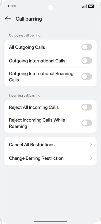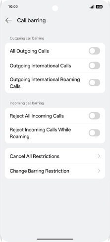 2 Turn call barring on or off