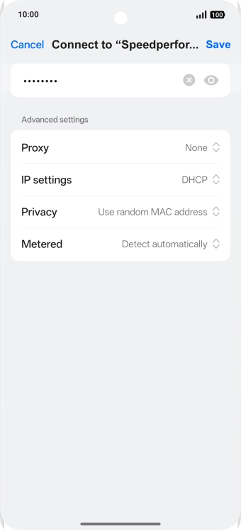 Key in the password for the Wi-Fi network and press Save.
