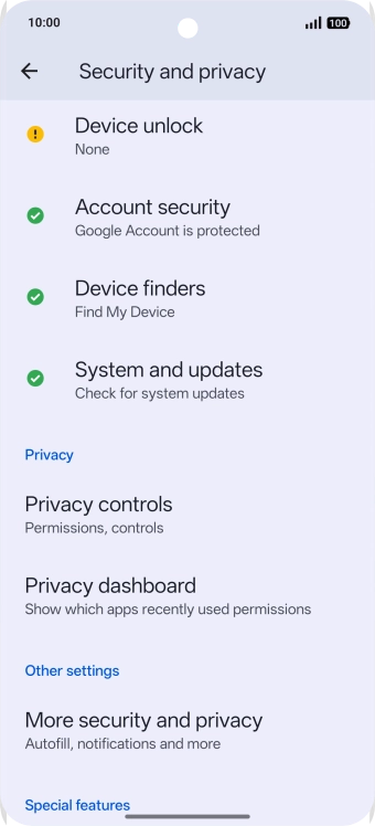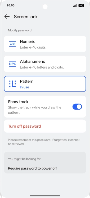 Press Screen lock and key in the additional phone lock code you created earlier.
