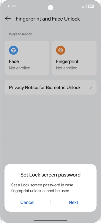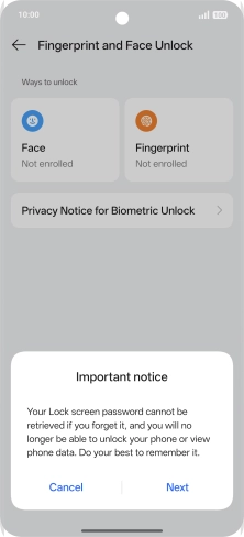 Follow the instructions on the screen to create the phone lock code using your fingerprint.