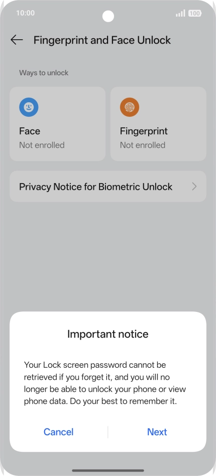 Press Next and follow the instructions on the screen to create an additional phone lock code.