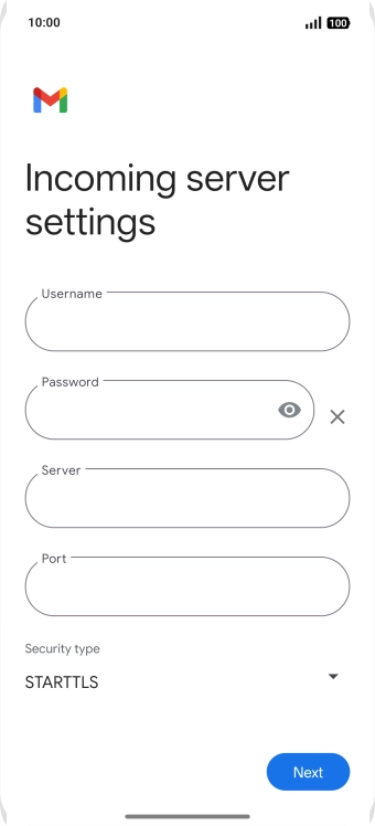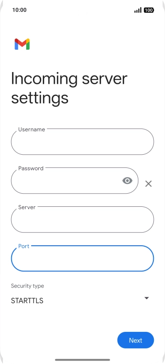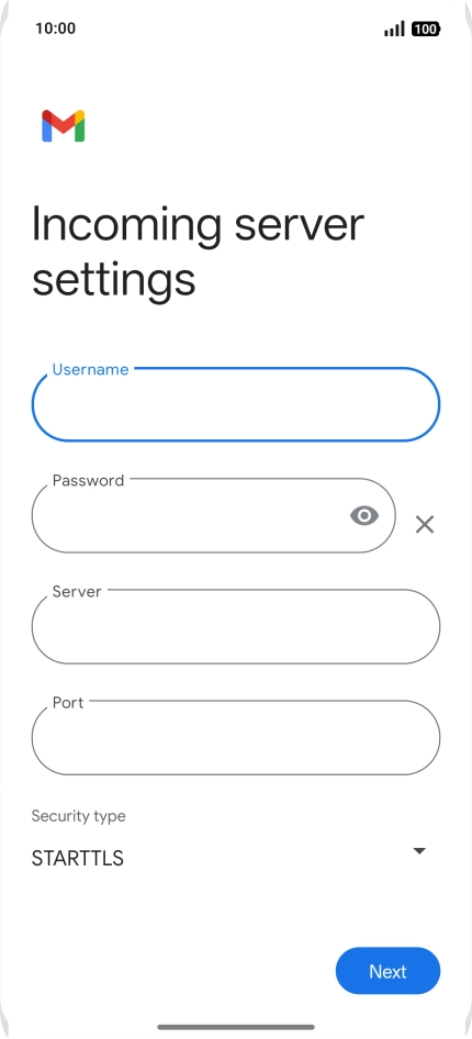 Press the field below "Server" and key in the name of your email provider's incoming server.