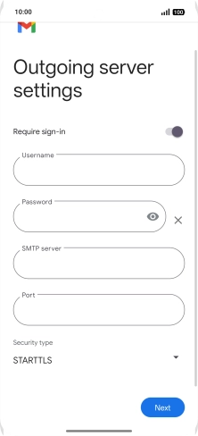 Press the field below "Username" and key in the username for your email the email provider's outgoing server.