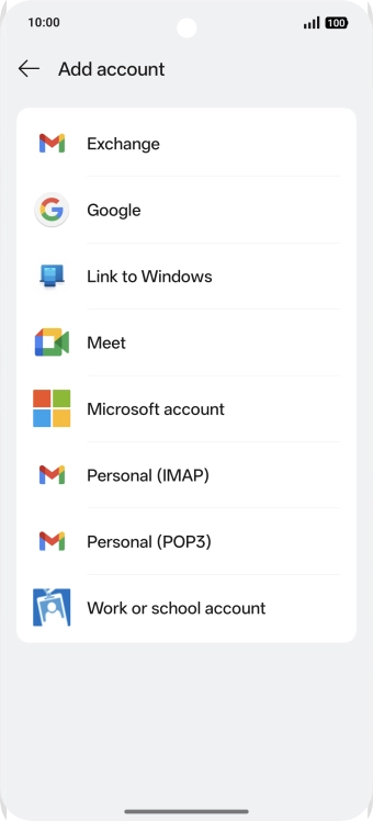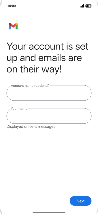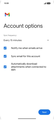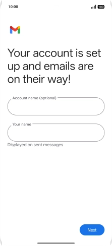 If this screen is displayed, you email account has been recognised and set up automatically. Follow the instructions on the screen to key in more information and finish setting up your phone.