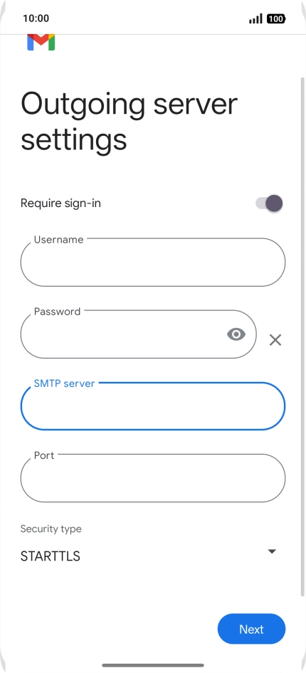 Press the field below "SMTP server" and key in the name of your email provider's outgoing server.
