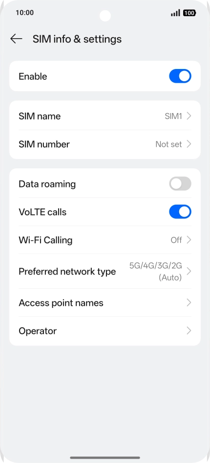 Press the name of the SIM.