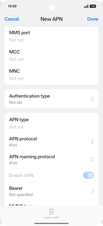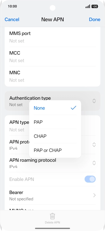 10 Enter APN type