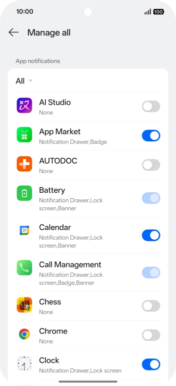 Press the indicators next to the required apps to turn the function on or off.