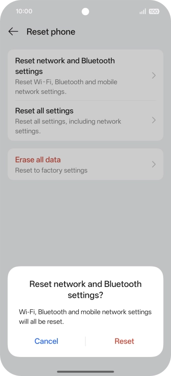 If you have problems using network configurations on your phone, such as mobile data, Wi-Fi or Bluetooth, resetting the network settings may help.