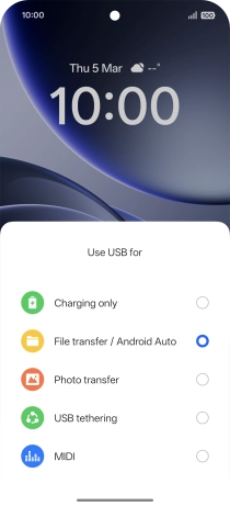 Press File transfer / Android Auto.
