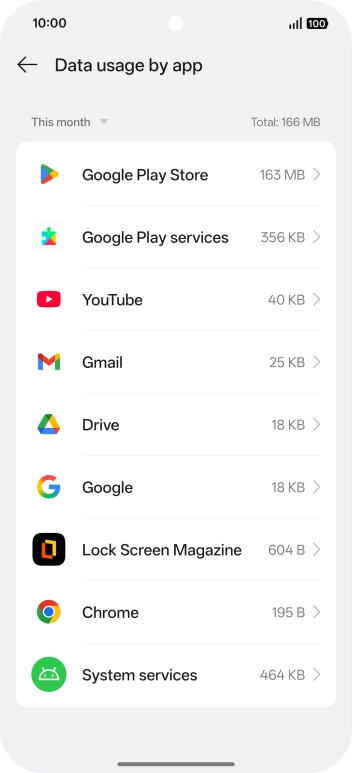 Press Data usage by app.