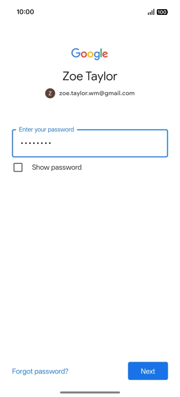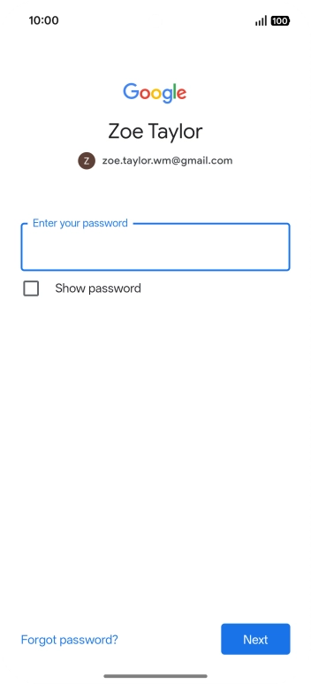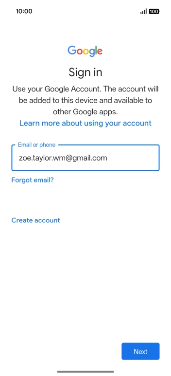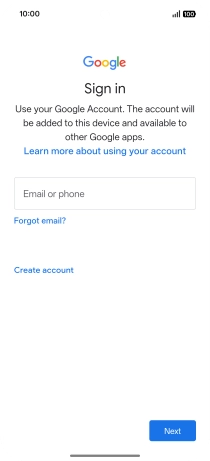 If you don't have a Google account, press Create account and follow the instructions on the screen to create an account.