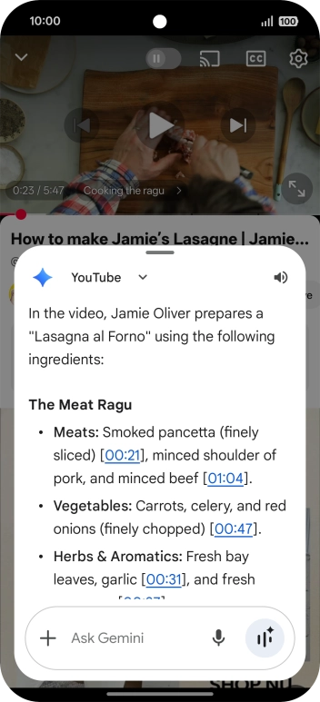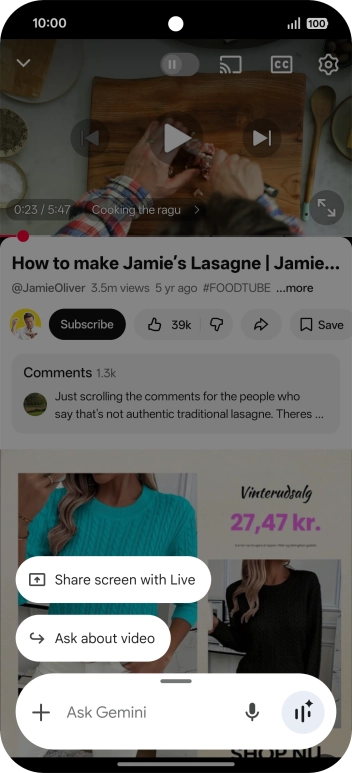 Press the share icon and follow the instructions on the screen to go to and share the required content on the phone screen with Gemini.