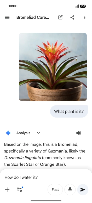 Press the camera icon and point the camera lens at the required subject or object to ask questions about it.