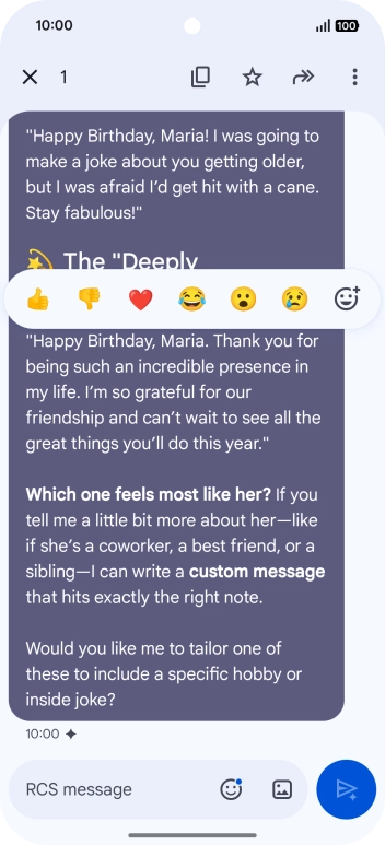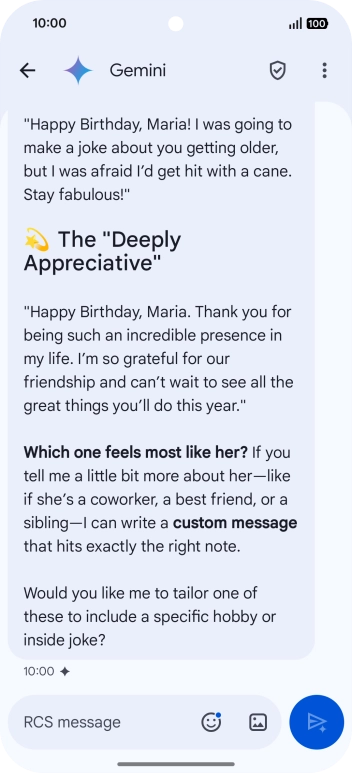 Press and hold the text suggestion from Gemini. Follow the instructions on the screen to use the text suggestion.