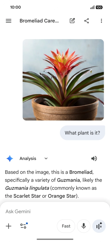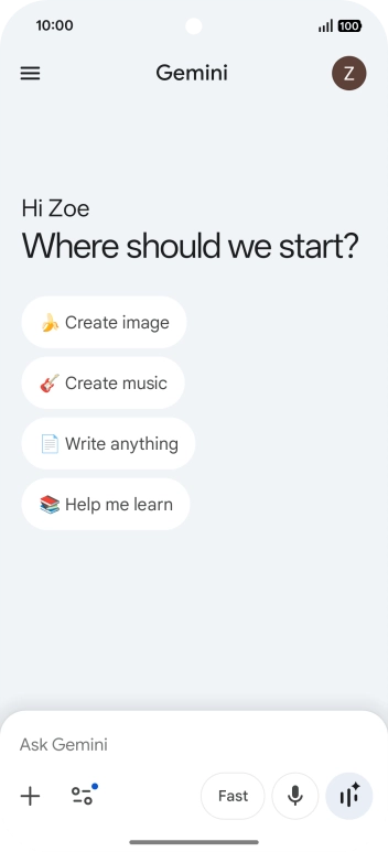 Follow the instructions on the screen to type or speak the required question. You can also attach pictures or documents and ask questions to them.