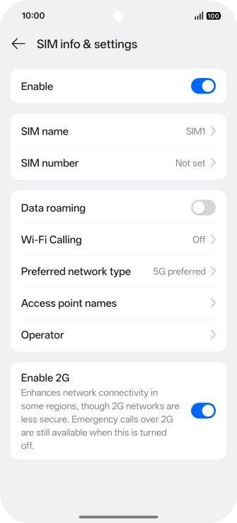 Press the name of the SIM.