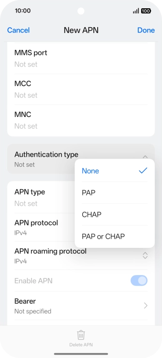 7 Enter APN type