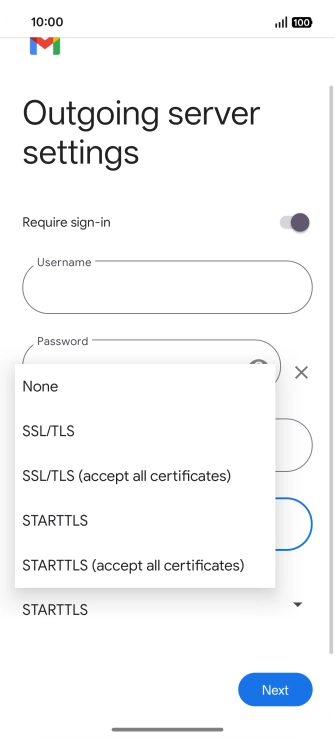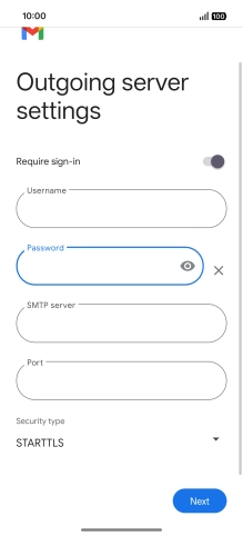 Press the field below "Username" and key in the username for your email the email provider's outgoing server.