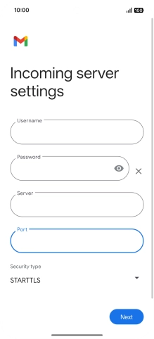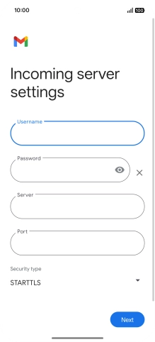 Press the field below "Server" and key in the name of your email provider's incoming server.