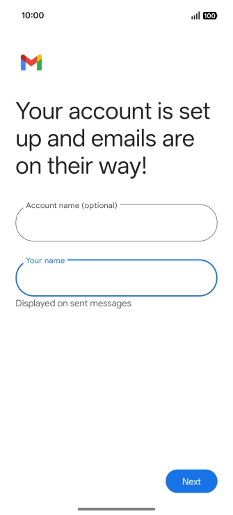 If this screen is displayed, you email account has been recognised and set up automatically. Follow the instructions on the screen to key in more information and finish setting up your phone.