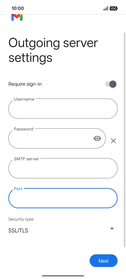 Press the field below "Port" and key in 587.