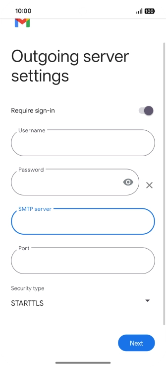 Press the field below "SMTP server" and key in the name of your email provider's outgoing server.