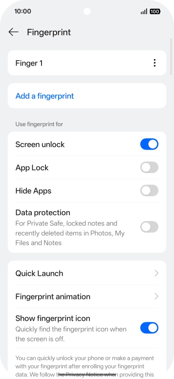 2. 2. Create phone lock code using a fingerprint